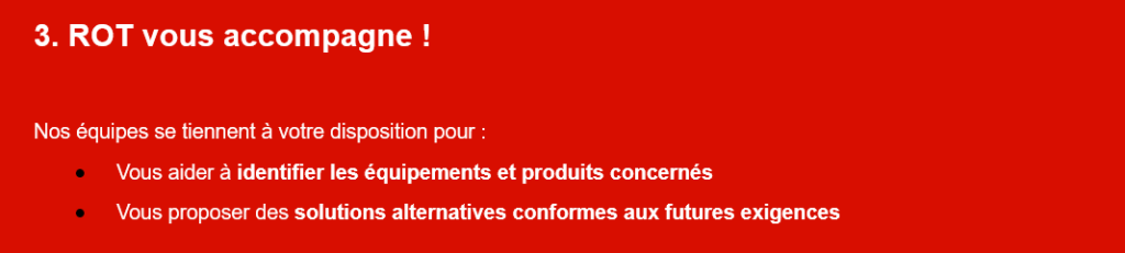 • Adapter vos achats et renouvellements afin d’éviter toute non-conformité après les échéances réglementaires